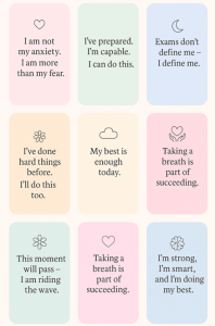 - Use calming strategies (deep breathing, grounding, mindfulness) before exams.